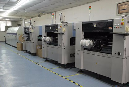 公司配有两条SMT全自动贴片生产线、日产能可达200万点,一条DIP插件生产线,日产能可达50万点。